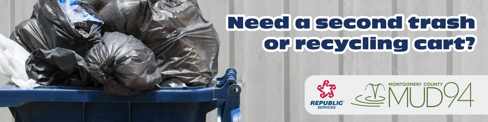 Montgomery County MUD 94 Residents can purchase additional services from Republic Services, and they will supply you with a secondary trash or recycling cart.
