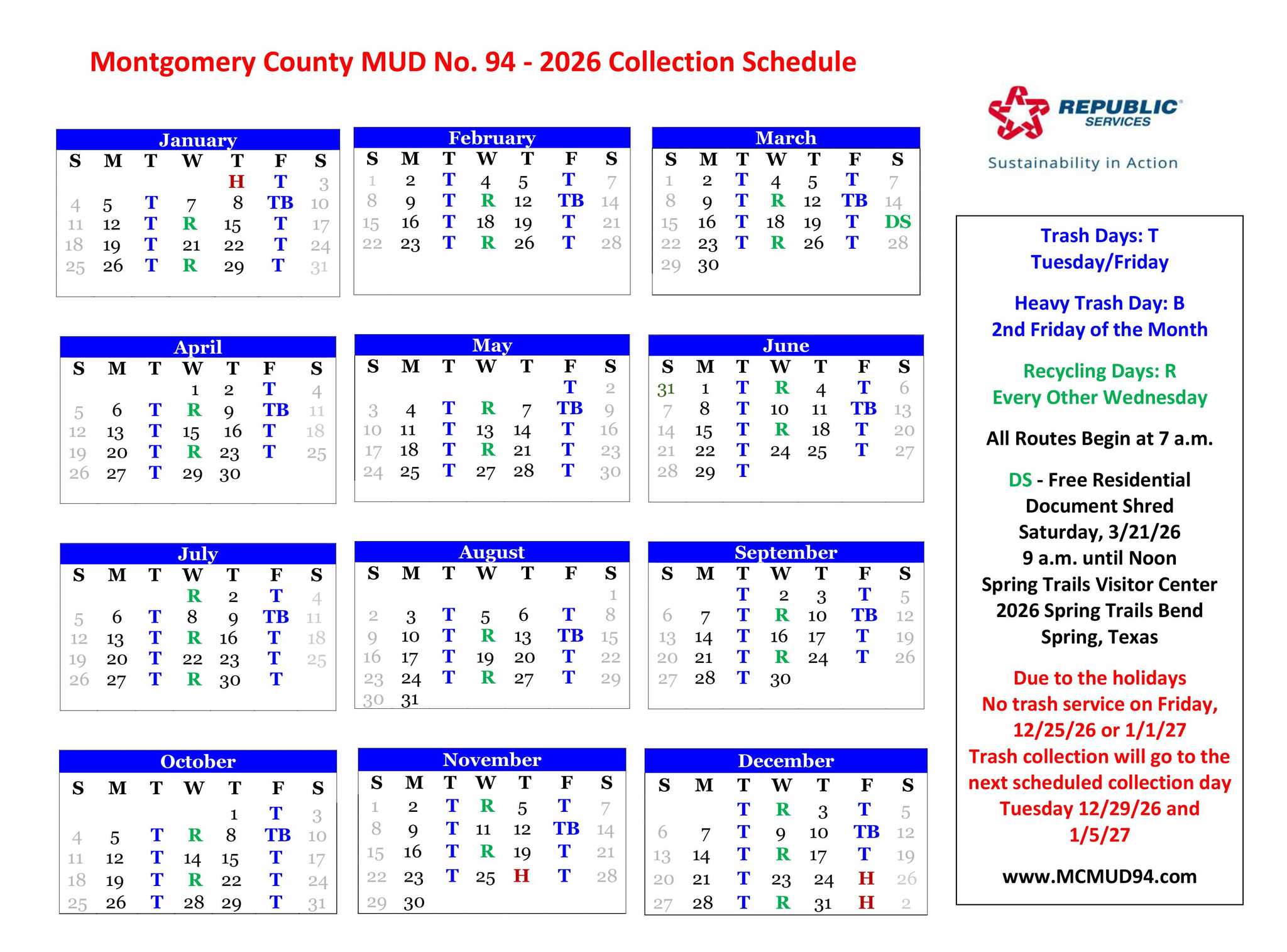 2026 Waste Collection Calendar